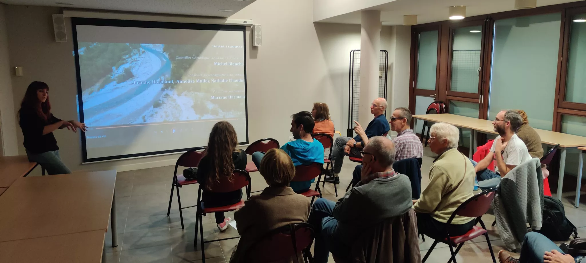 Samedi 14 octobre, c’est à Peymeinade que nous avons animé la première projection de l’automne dans les Alpes-Maritimes. Ambiance cinéma dans la salle des fêtes de la commune : une quinzaine de personnes sont venues voir notre film « Tresse de vie, voyage au cœur des rivières alpines » et participer aux échanges. Le public a discuté de la Siagne, la rivière qui alimente cette partie de la région, très aménagée et dont le bassin amont est classé en crise sécheresse par arrêté préfectoral. Les changements climatiques ont aussi été largement abordés car les récents évènements sont sources d’inquiétudes pour l’avenir : la tempête Alex qui a eu des effets dévastateurs dans les vallées il y a 3 ans, la sécheresse intense des deux dernières années, et plus récemment le passage désastreux de la tempête Aline…