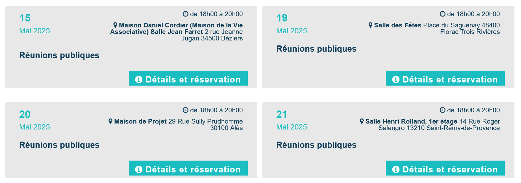 Conséquence directe de notre recours devant le Conseil d’Etat, une vaste enquête publique inédite s’est déroulée du 5 mai au 6 juin 2025. Son périmètre couvre 324 communes, réparties sur 16 départements et 3 régions, afin de répondre aux attentes d’information et besoins d’expression du public. Parmi ces 324 communes concernées, 15 étaient dotées d’un commissaire-enquêteur afin d’éclairer le public et recevoir ses contributions à l’occasion de permanences ; la possibilité était également offerte d’accéder au dossier d’enquête, sur support papier et informatique. 11 réunions publiques étaient également organisées